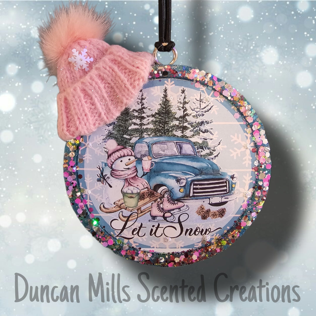 Let it snow Snowman Freshie | stocking cap Winter | old Truck Choose size | Made to order